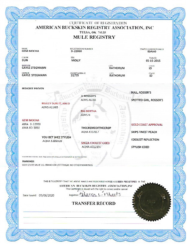 Gem State Mule Company announces the birth of ‘Gem’s Dun It Again’ (name pending). Boone, barn name meaning ‘Blessing’ is out of our AQHA, APHA, PHBA registered mare, ‘Allways a Lady’ (Ally), a halter and western pleasure champion, who’s personality and disposition really shines! Boone is sired by 4-Time World Champion Arc’o Really Dun It (Artie), a versatile and talented jack who has produced other phenomenal babies in our breeding program. Boone has a bright future ahead with new owners, Douglas and Hunter Joppa. Hunter has been a lifetime equine enthusiast and has shown and qualified at AQHA World Shows. She owns a company called Montana Tines Mohair which was started when she lost her beloved mule, Buddy, full brother to Boone. We are excited about this ‘perfect match’.