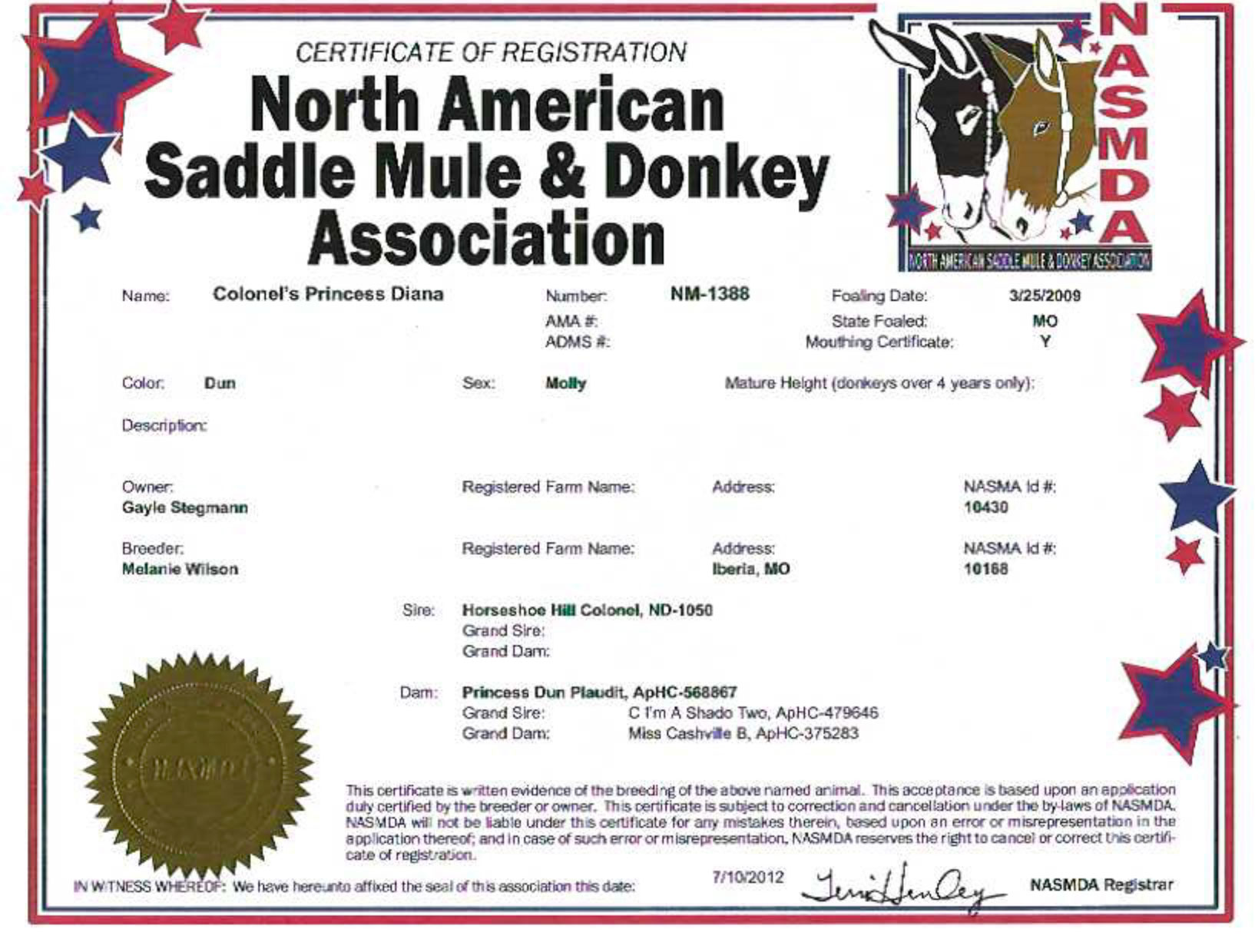 SWS Grand Finale is owned by Don Jacklin and Gayle Stegmann. She was bred by Pauline Ferguson, who’s jack sire, Sweetwater Sterling has produced the most winningest mules on the race track, including Hot Ticket, Red Ticket and Lucky Ticket and is currently in the AMRA Hall of Fame. Trainers Ruby Thomas and Peggie Hanford lead her into this winning season and are excited about the prospect of competing in the Open Racing Circuit next year.